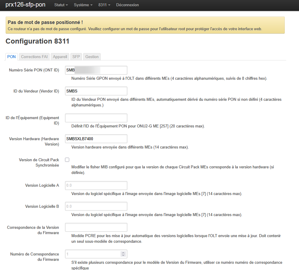 - PON Serial Number (ONT ID) : (copié depuis votre Livebox)