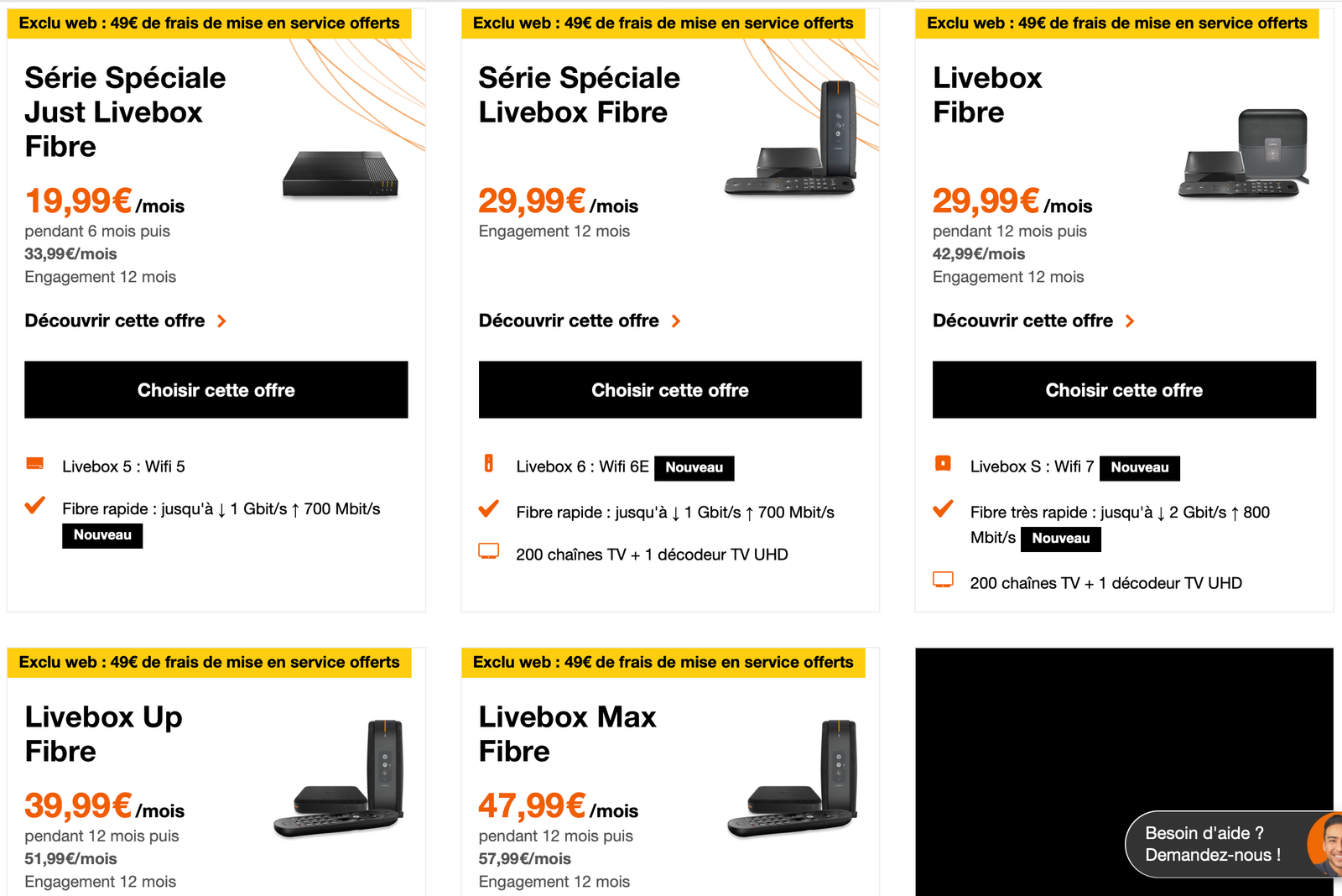 - Livebox Up : la version boostée. Livebox 7, décodeur TV 6, appels illimités fixes + mobiles, enregistreur 100 h. 39,99 €/mois, puis 51,99 € après un an.