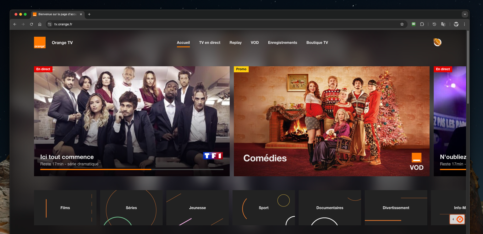 - Depuis le 01/02, la TV d'Orange s'est dotée d'une nouvelle interface "plus fluide, plus intuitive, plus innovante". Pour le moment, cette interface est disponible sur la plate forme Web de la TV d'Orange, mais pourrait intégrer bientôt celle des décodeurs TV (pas d'infos sur l'application Android et Apple TV pour le moment). Vous pouvez la tester sur https://tv.orange.fr/