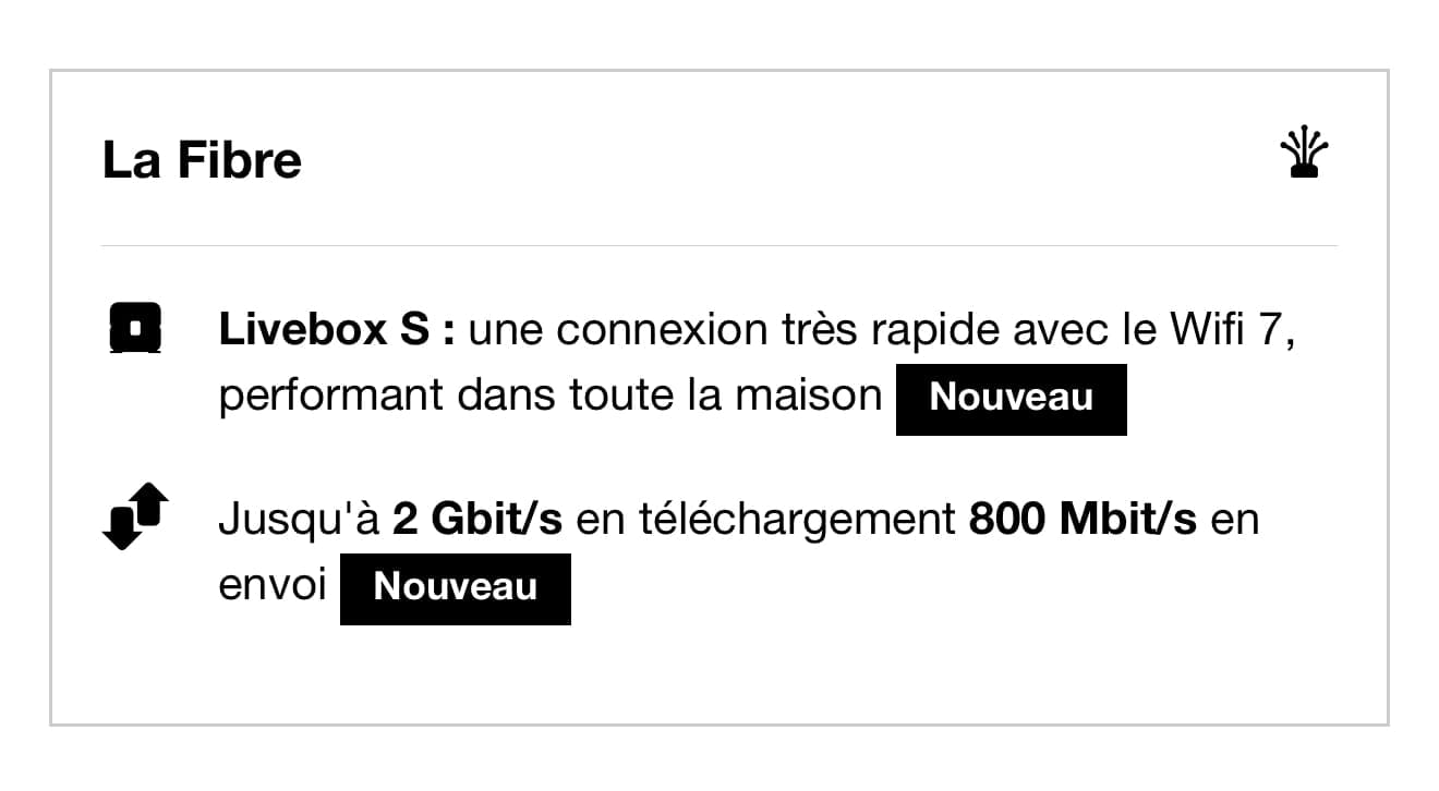 Livebox Fibrę - Livebox S - Wifi 6 - 2 Gbit/s down et 800Mbps up