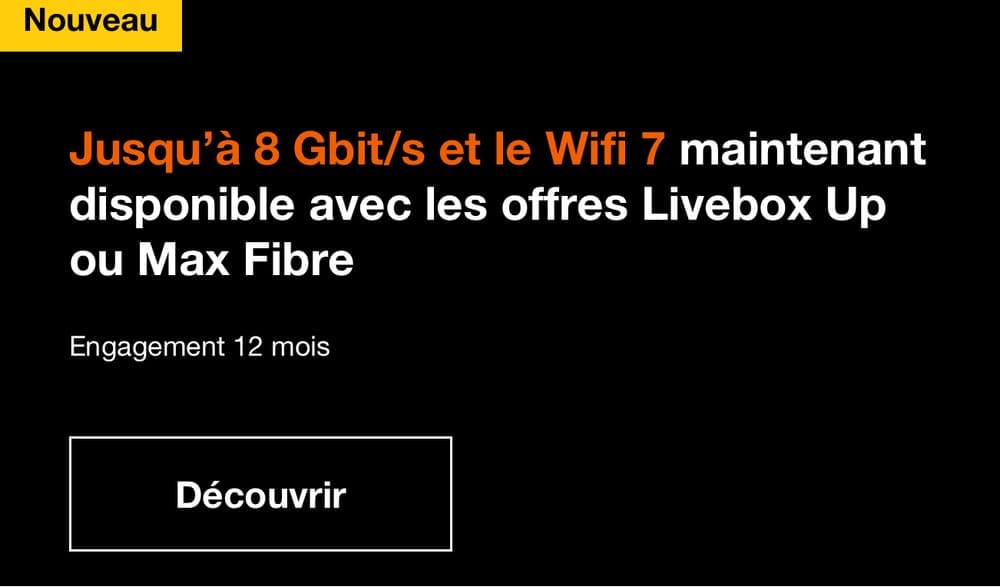 Orange offre désormais le débit de 8Gigas symétrique à tous ses abonnés "hauts de marché" éligibles XGS-PON : Livebox Up et Livebox Max. Auparavant, seuls les abonnés Max pouvaient en bénéficier. Dorénavant, ce sera donc aussi le cas des (heureux) abonnés Livebox Up. Il y a néanmoins plusieurs conditions et pas des moindres : l'éligibilité XGS-PON évidemment (nous avions publié ici comment tester son éligibilité, avec les témoignages clients sur les différentes étapes), et avoir une Livebox 7. En attendant le déploiement XGS-PON, le débit est de 2Gbps down et 800Mbps up pour les deux offres.