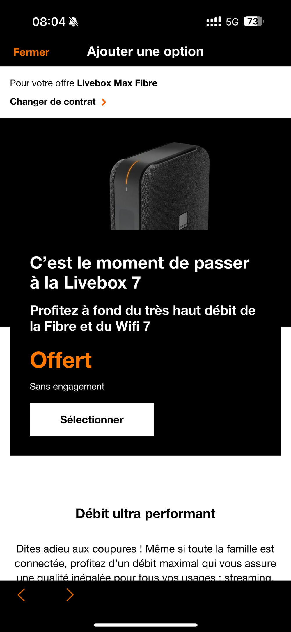 Update du 11/04: d’après le document contractuel, le changement de Livebox 7 pour les abonnés Livebox Max est bien gratuit.