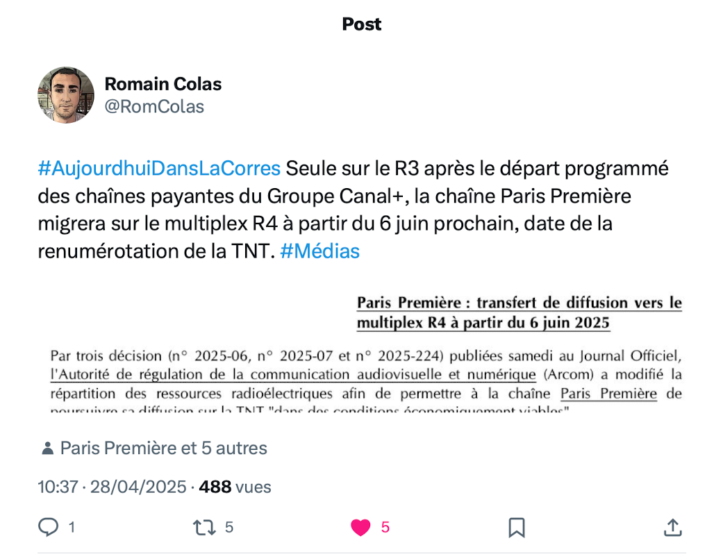 Pas d’inquiétude côté technique : l’Arcom a confirmé que le R4 peut accueillir six chaînes HD sans problème, et que ce déménagement permet surtout d’assurer un avenir plus stable (et plus économique) pour Paris Première.